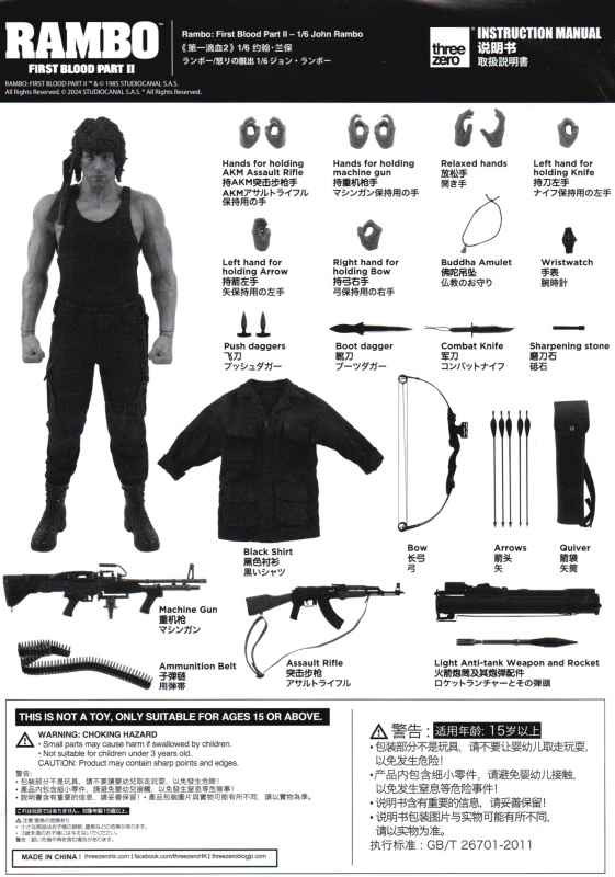- Seven (7) sets of interchangeable hands: One (1) pair of fists, one (1) pair of relaxed hand, one (1) pair of hands for holding machine gun, one (1) pair of hands for holding AKM Assault Rifle, one (1) pc of left hand for Holding Knife, one (1) pc of right hand for holding Bow, one (1) pc of left hand for holding arrow